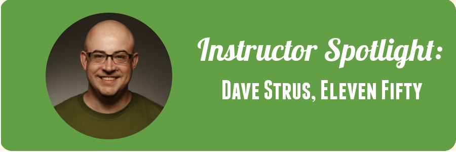 Having worked professionally with C++, Java, COBOL, PHP, and Microsoft platforms early in his career, Dave Strus became obsessed with the Ruby language in 2004. Now, when he's not running his web and mobile app consultancy, Fretless, he teaches at Eleven Fifty in Indianapolis. We talk to Dave about the ideal Eleven Fifty student, creating the curriculum for the Ruby on Rails and JavaScript courses, and which technologies students will learn in each class.